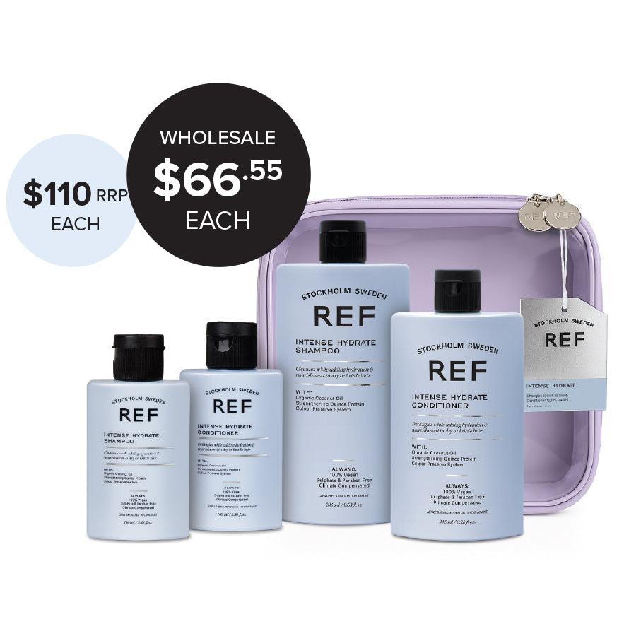 Choose from four available REF Value Travel Bags — Illuminate Colour, Intense Hydrate, Ultimate Repair, and Weightless Volume. Order a mix or stock up on your salon’s bestsellers.