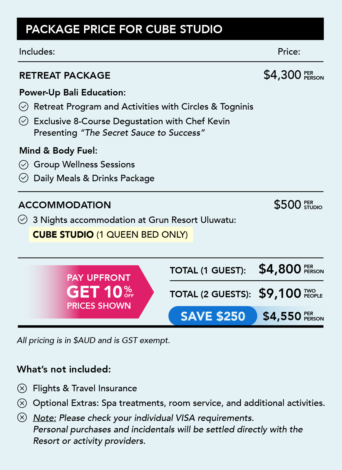 Retreat Package Pricing